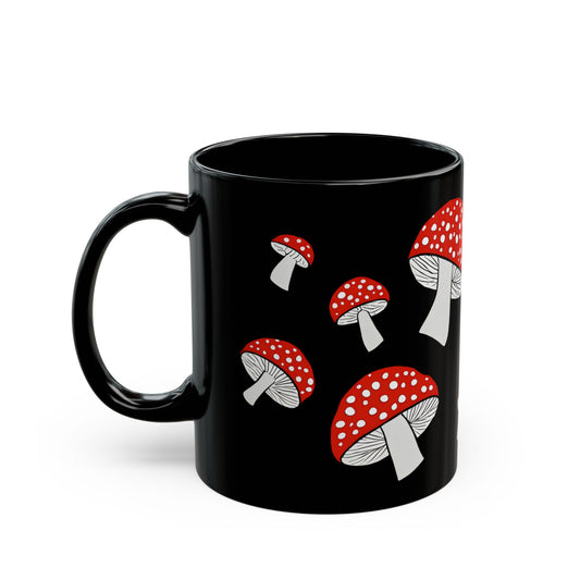 Cottagecore Cozy Vintage Spotted Mushroom Pattern Black Mug (11oz)